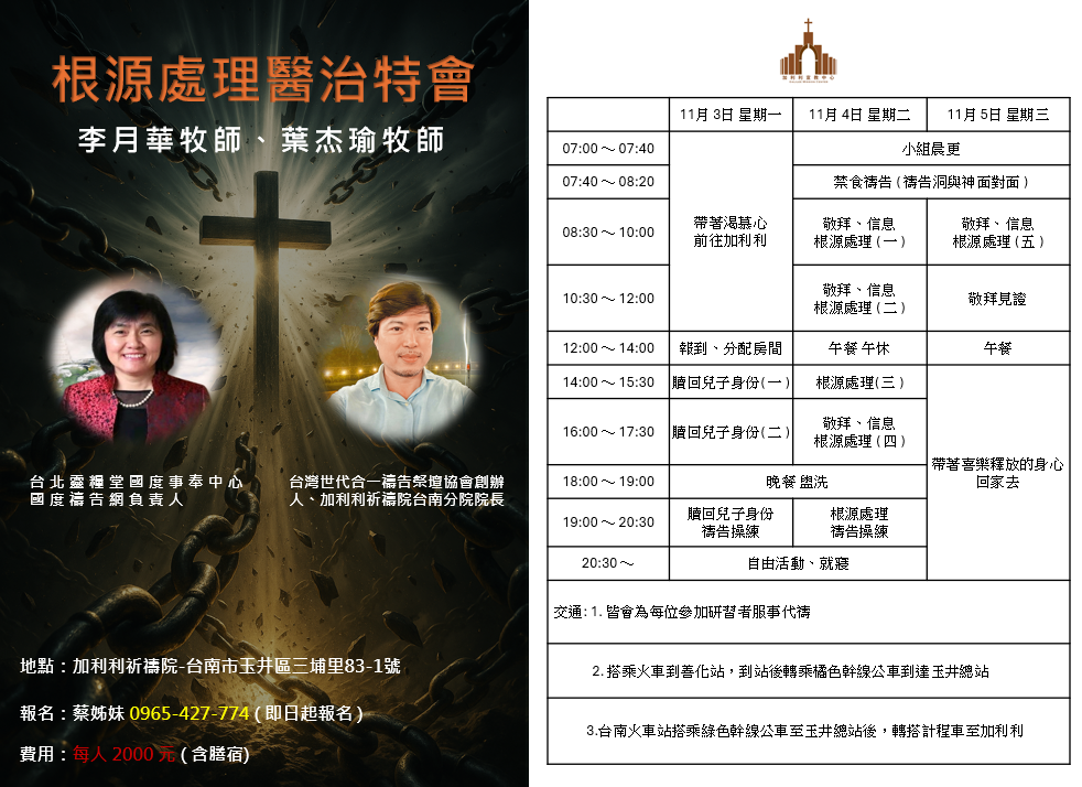 11/03(一)~11/05(三) 《根源處理醫治特會》